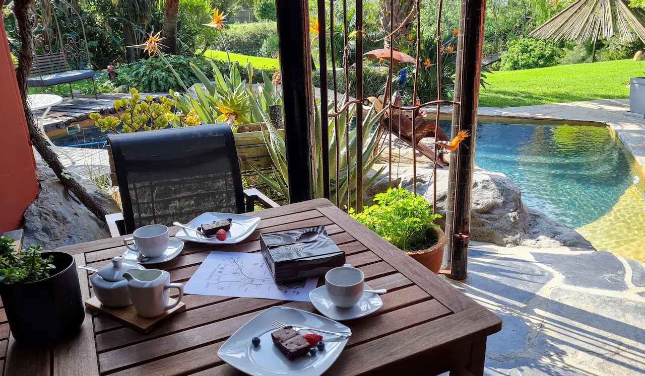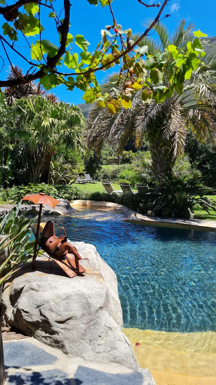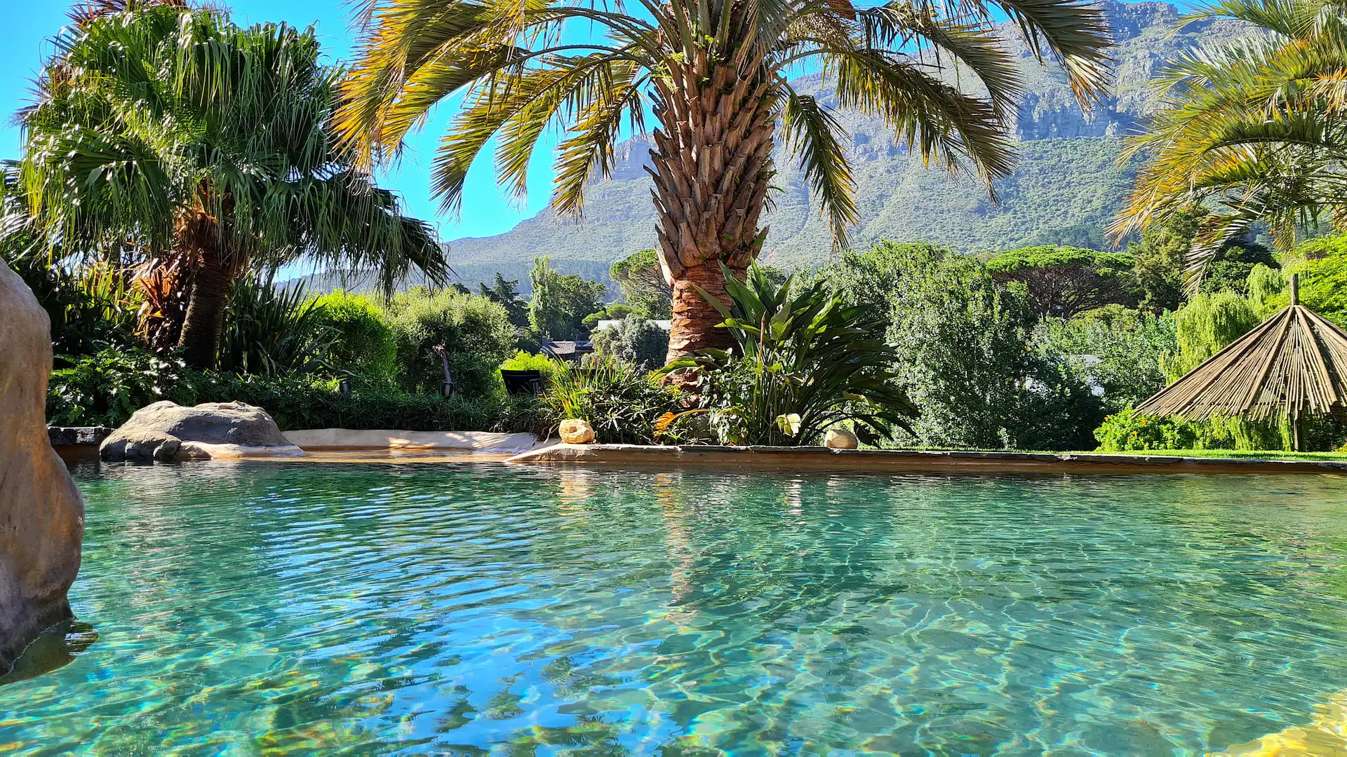 Unser reetgedecktes Gästehaus befindet sich inmitten Hout Bays traumhafter Natur, auf einem über 8000m² großen Gelände, ruhig und sicher gelegen. Sie erwartet ein fantastischer Blick von unseren besonders schönen Zimmern, ein üppig grüner, paradiesischer Garten und ein kristallklarer Felsenpool. Verschiedene gekühlte Getränke finden Sie an unserer Bar. Genießen Sie unsere gemütlichen Rückzugsoasen, wie zum Beispiel die große Kaminlounge. Das geschmackvolle Ambiente, einzigartiger Wohnkomfort und das harmonische Design runden die Ausstattung ab. Wir bieten den idealen Ramen für einen aktiven Urlaub mit viel Platz zum Erholen und Entspannen.