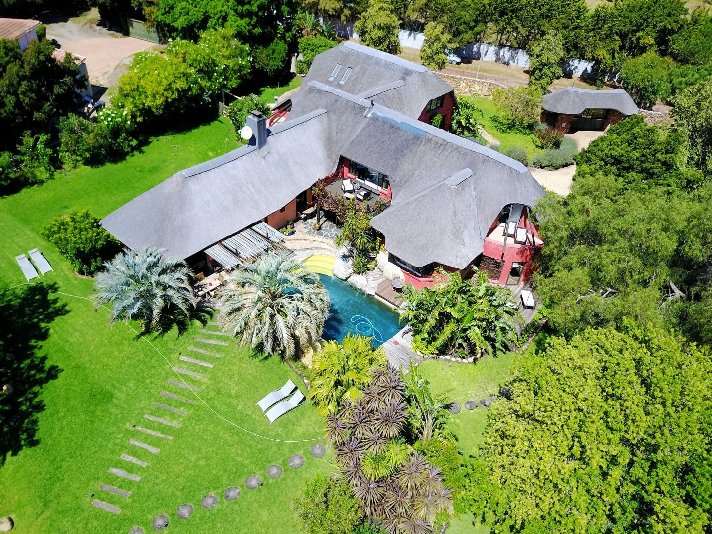 Sie finden uns in Hout Bay, dem schönsten Vorort Kapstadts, etwas versteckt in einer sicheren Villengegend, in paradiesischer Umgebung. Das reetgedeckte Gästehaus bietet Ihnen viel Platz und luxuriösen Komfort. Unser großer afrikanische Garten mit kristallklarem Pool aus Natursteinfelsen bietet Ihnen die perfekte Erholung in nächster Nähe zu wunderschönen Restaurants, lokalen Straßen- und Food Märkten, Stränden und natürlich zu den beliebten Ausflugszielen, wie zum Beispiel dem Tafelberg und dem Kap der guten Hoffnung.