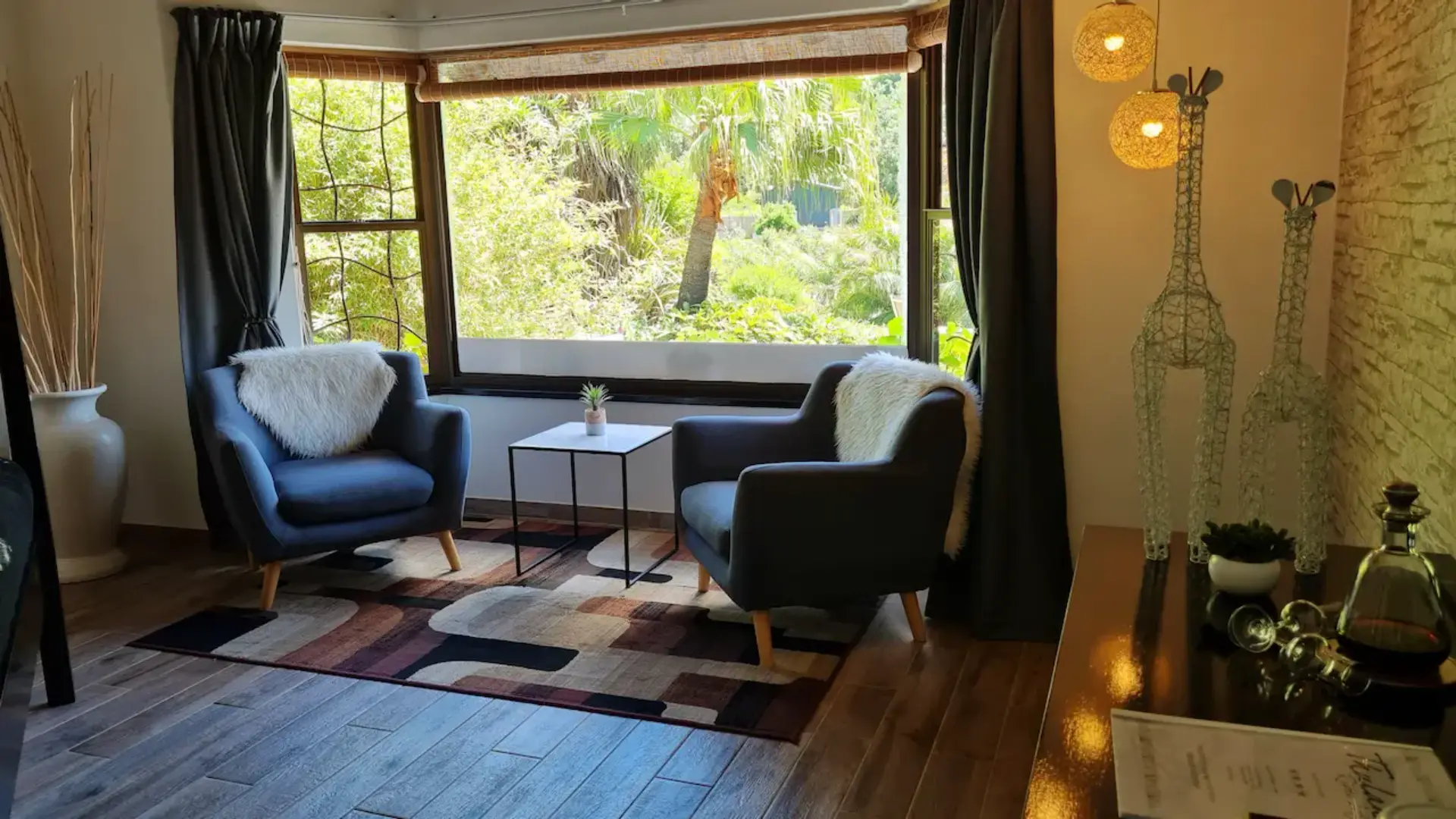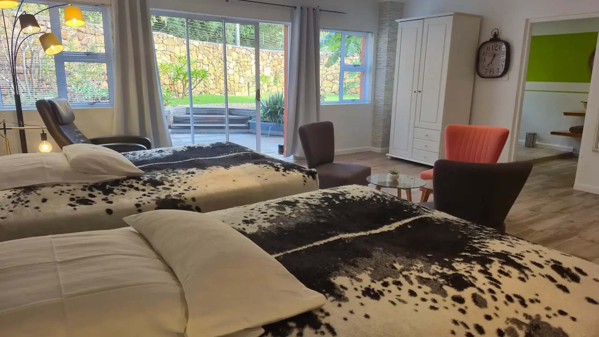 🦛 Hippo ist ein 35 m² großes, stilvoll und modern ausgestattetes Twin Zimmer und bietet Ihnen neben zwei Queen Size Doppel- Betten eine gemütliche Einrichtung mit allem Komfort. Das große traumhafte Bad ist mit Dusche mit Massagefunktion, einer Badewanne, handgearbeitetem Waschbecken, Fön und ausgesuchten Pflegeartikeln ausgestattet. Von Ihrem privaten, gemütlich eingerichteten Balkon blickt man auf die 12 Apostel Bergkette, das Tafelbergmassiv und unseren paradiesischen Garten.