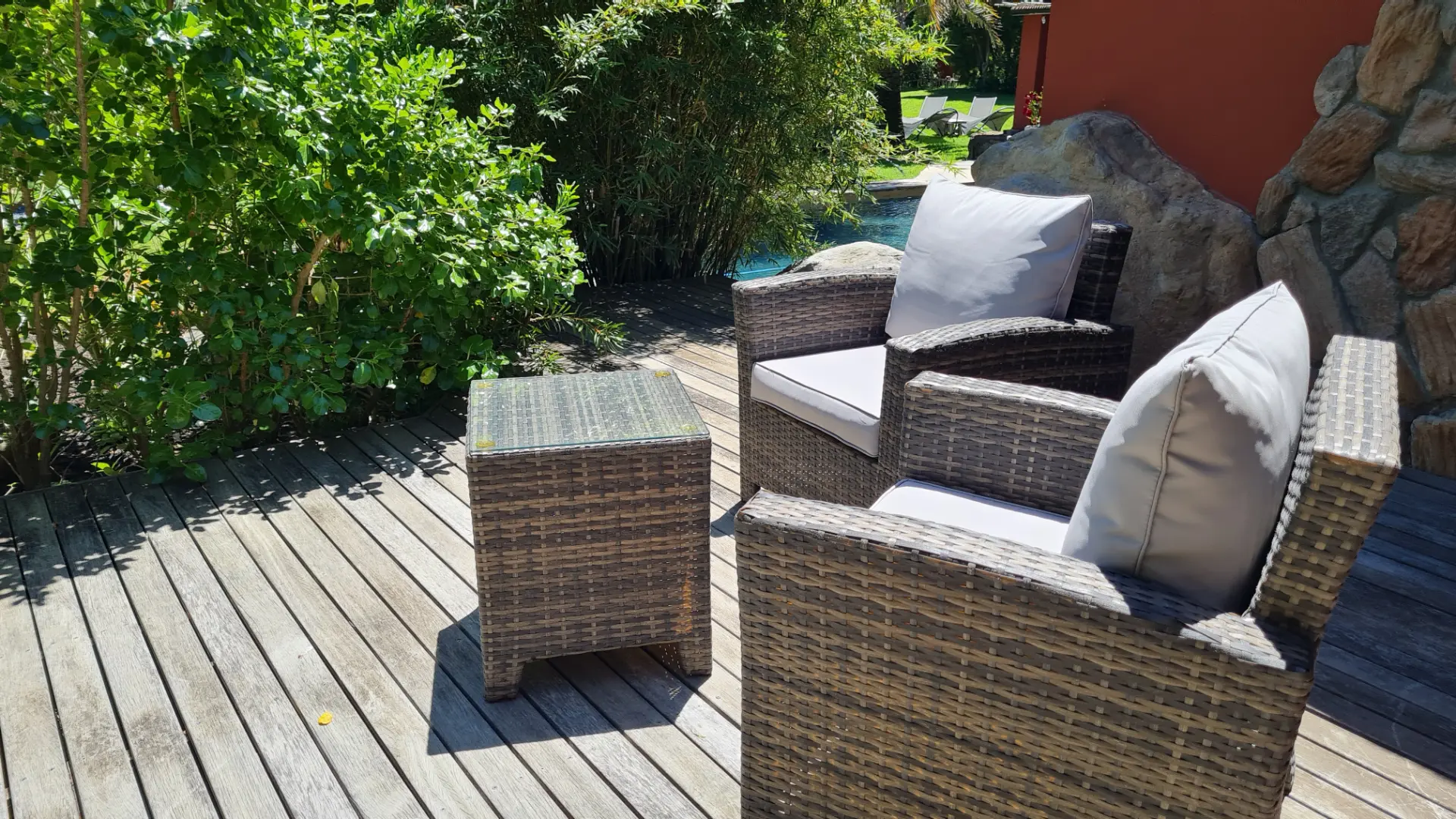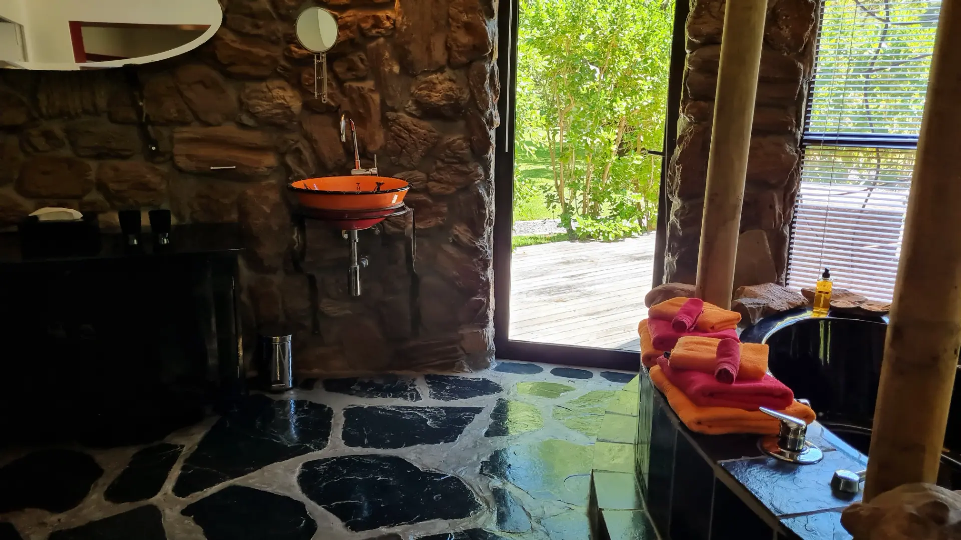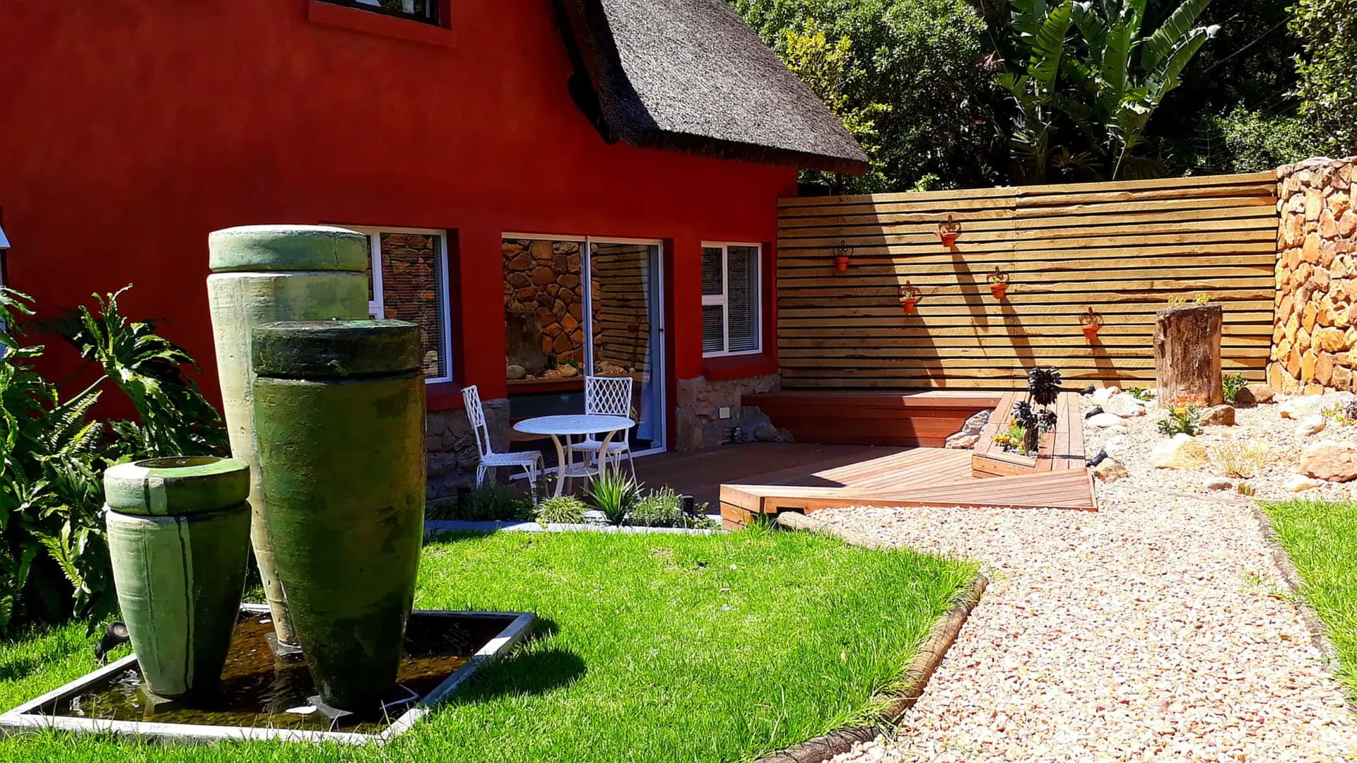 Zu jedem Zimmer gehören traumhafte Terrassen oder Balkone, die einen paradiesischen Blick auf den Tafelberg, die 12 Apostel und unseren Constantiaberg freigeben. Die großzügigen en-suite Bäder sind mit individuell handgearbeiteten Waschbecken, modernen Massage- oder Wasserfallduschen sowie Föhn und ausgewählten Pflegeartikeln ausgestattet.